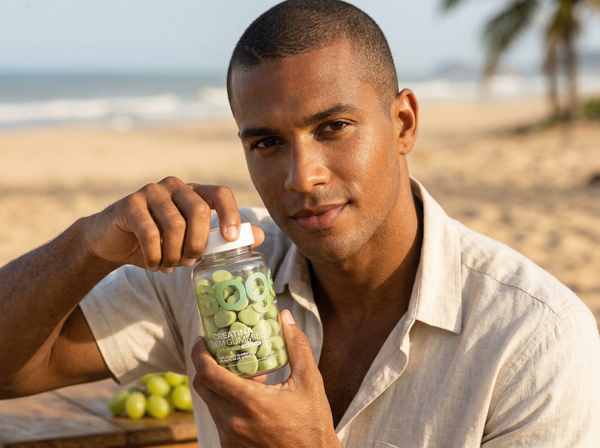 Cada gummy contém creatina monohidratada de alta absorção. Basta mastigar a dose diária recomendada — sem necessidade de água, shaker ou medidor. Prático e delicioso.